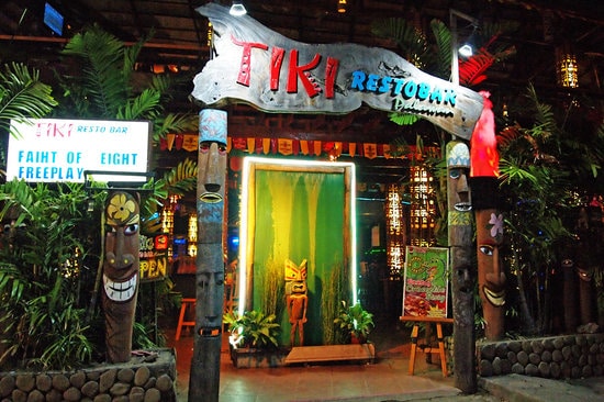 Instead, Tiki Resto Bar is a full-on live music club. There’s a huge stage with live performers who sing, play instruments and put on a great show. The lighting is dim with laser lights dancing with the music and glowing neon lights all around.